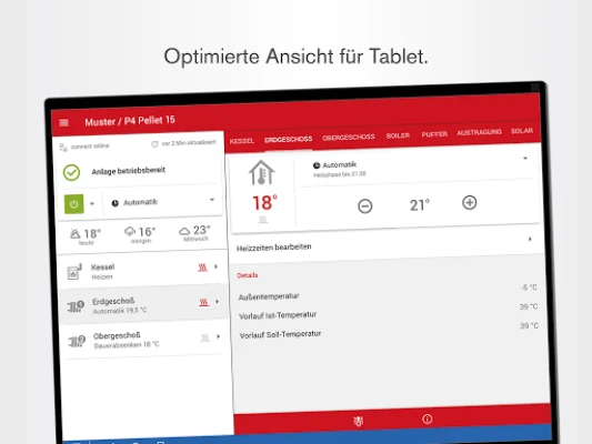 Entdecken Sie eine neue Dimension der Kontrolle für Ihr Fröling Heizsystem. Die Fröling Connect App wurde meisterhaft optimiert, um Ihnen eine intuitive und leistungsstarke Steuerung direkt über Ihr Smartphone oder Tablet zu ermöglichen. Sie integriert sich nahtlos in Ihren Alltag und transformiert die Art und Weise, wie Sie mit Ihrer Heizung interagieren, indem sie Komfort und Effizienz in den Mittelpunkt rückt und Ihnen stets die volle Übersicht verschafft.